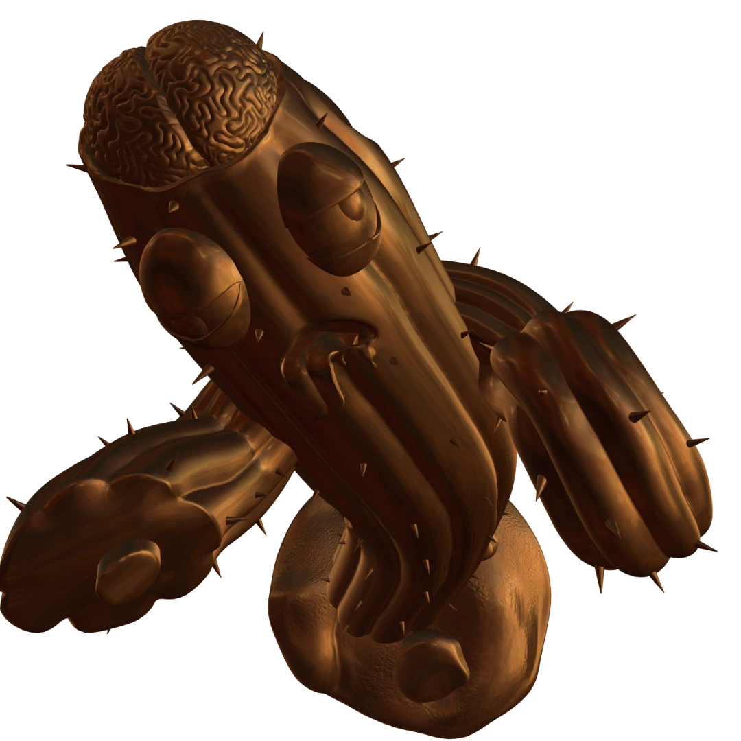 With a squinting eye, Brainey first materialized in the digital universe. Disfigured and hungry, he searches for chlorophyll, but unfortunately for him it’s very difficult to find what you’re looking for when everything around you is made of pixels.