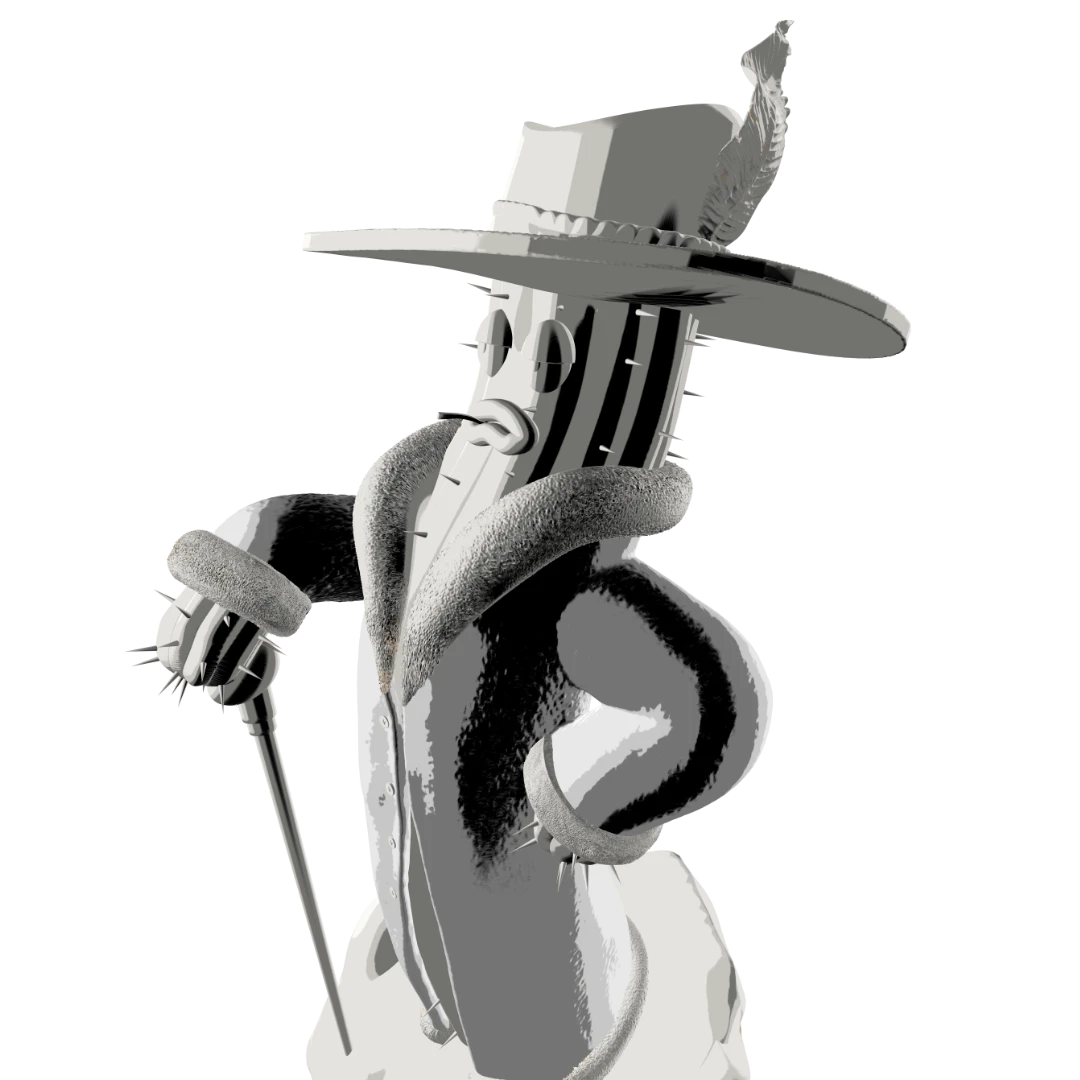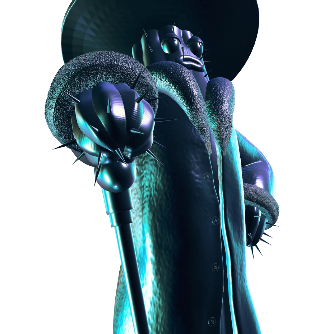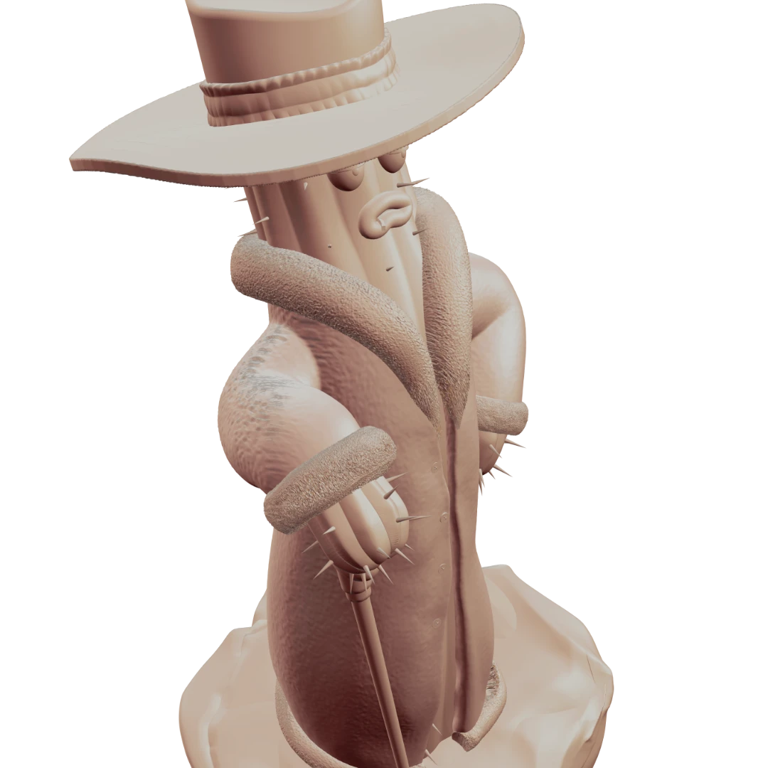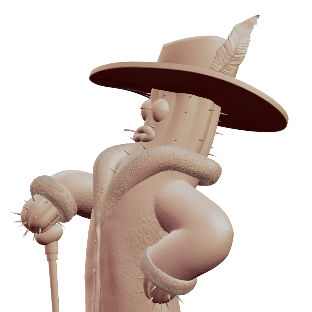 This spiny guy is generally a colorful and eccentric character… in every way. That’s why we added extra attention to some more decorative elements like fur, cane and hat. He’s also very self-absorbed and considers himself a superior person, which is why he has a relaxed expression on his face that conveys: „I run this place!”