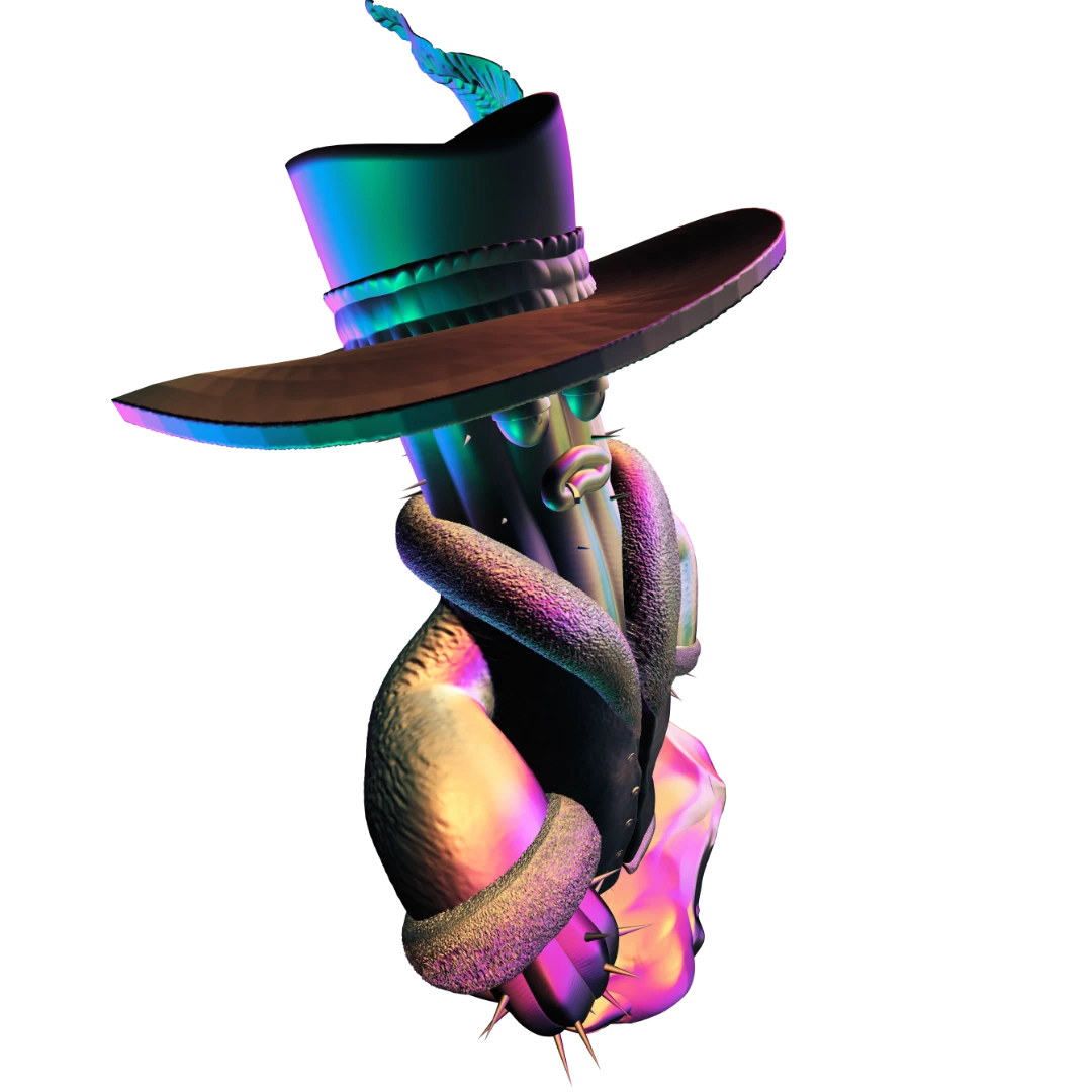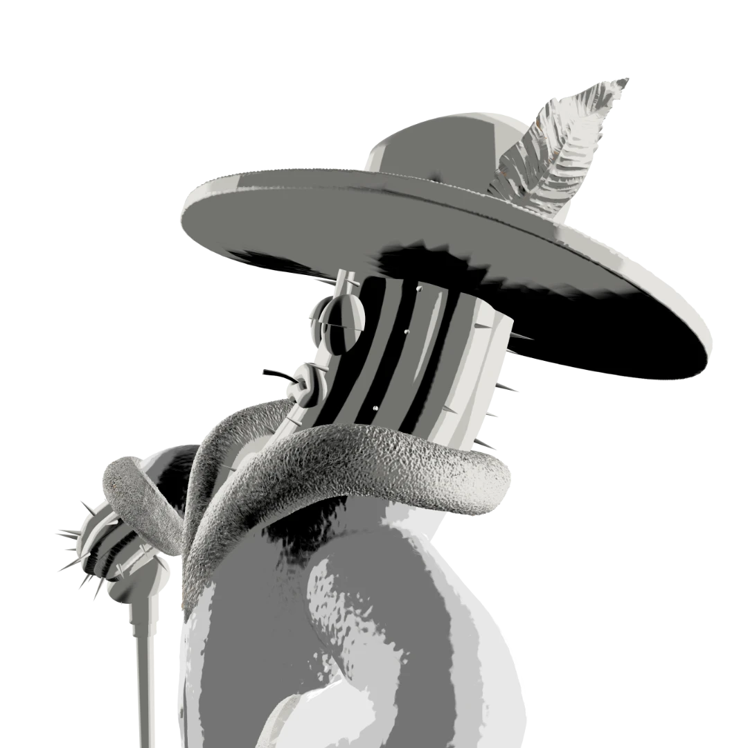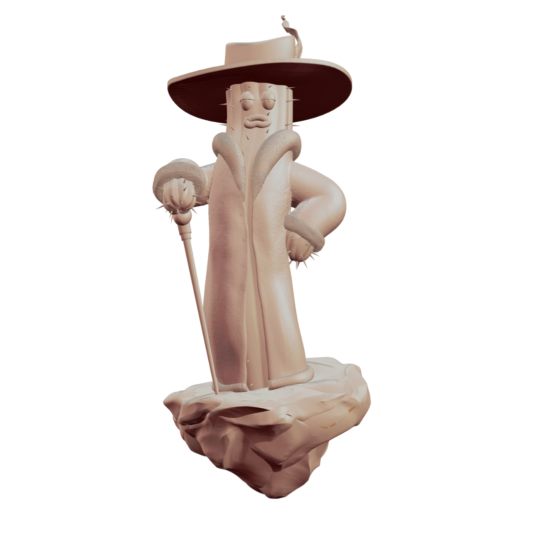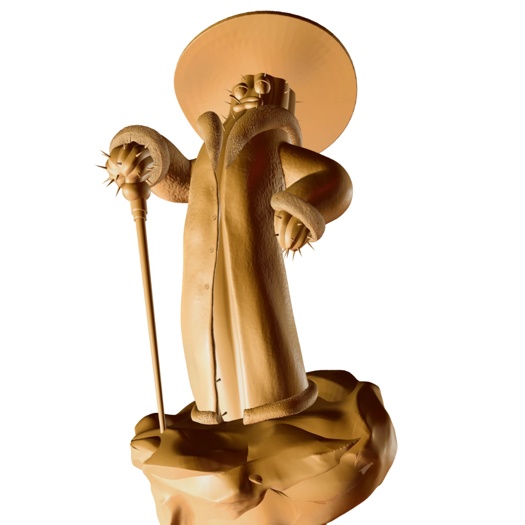 This spiny guy is generally a colorful and eccentric character… in every way. That’s why we added extra attention to some more decorative elements like fur, cane and hat. He’s also very self-absorbed and considers himself a superior person, which is why he has a relaxed expression on his face that conveys: „I run this place!”