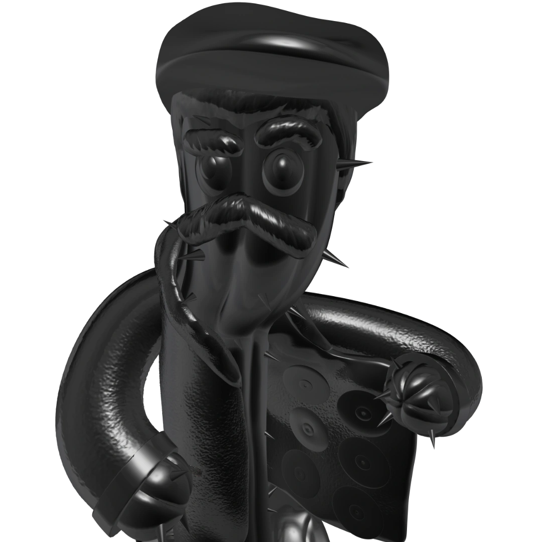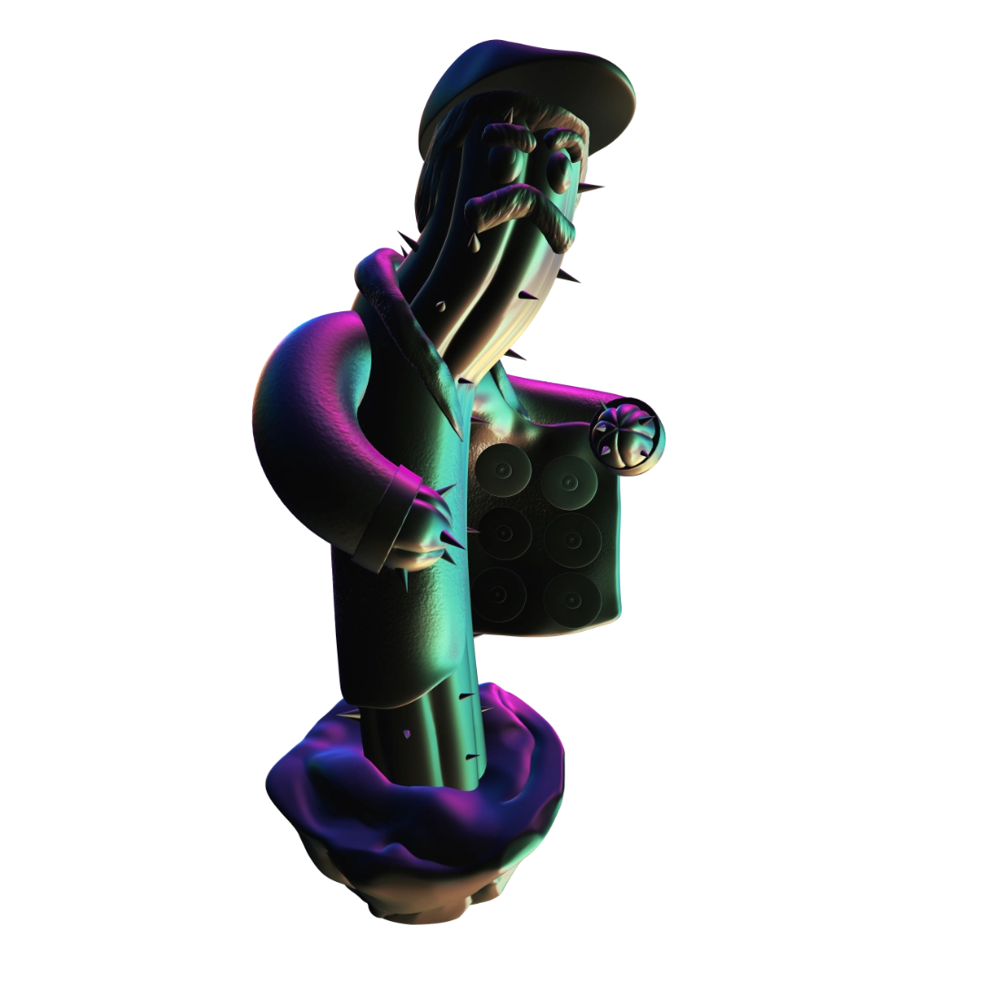 a racketeer by profession, but he’s stuck in the 2000s. His most important accessory is his old coat, which usually hides all sorts of things to sell… from pirated CDs to fake gold and push-button phones (he doesn’t believe in modern technology).