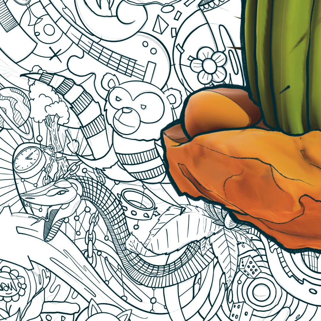 I present to you a fusion between 2 styles: On one side we have the specific style of the Cactus universe, full of color and contrast, and on the other side we have Doodle World, a cartoonish style full of details. There are 2 styles that I have been exploring in parallel for some time, so I experimented with a pretty funky fusion that I think blends quite well.