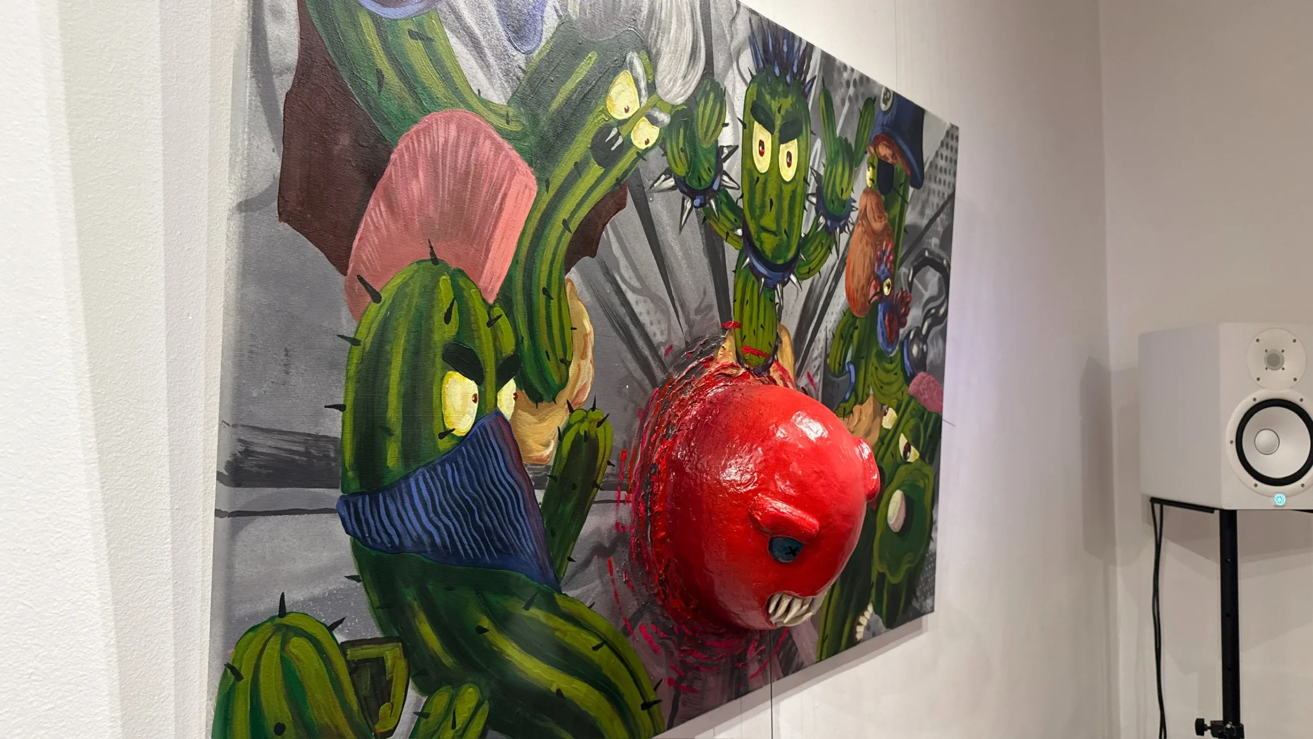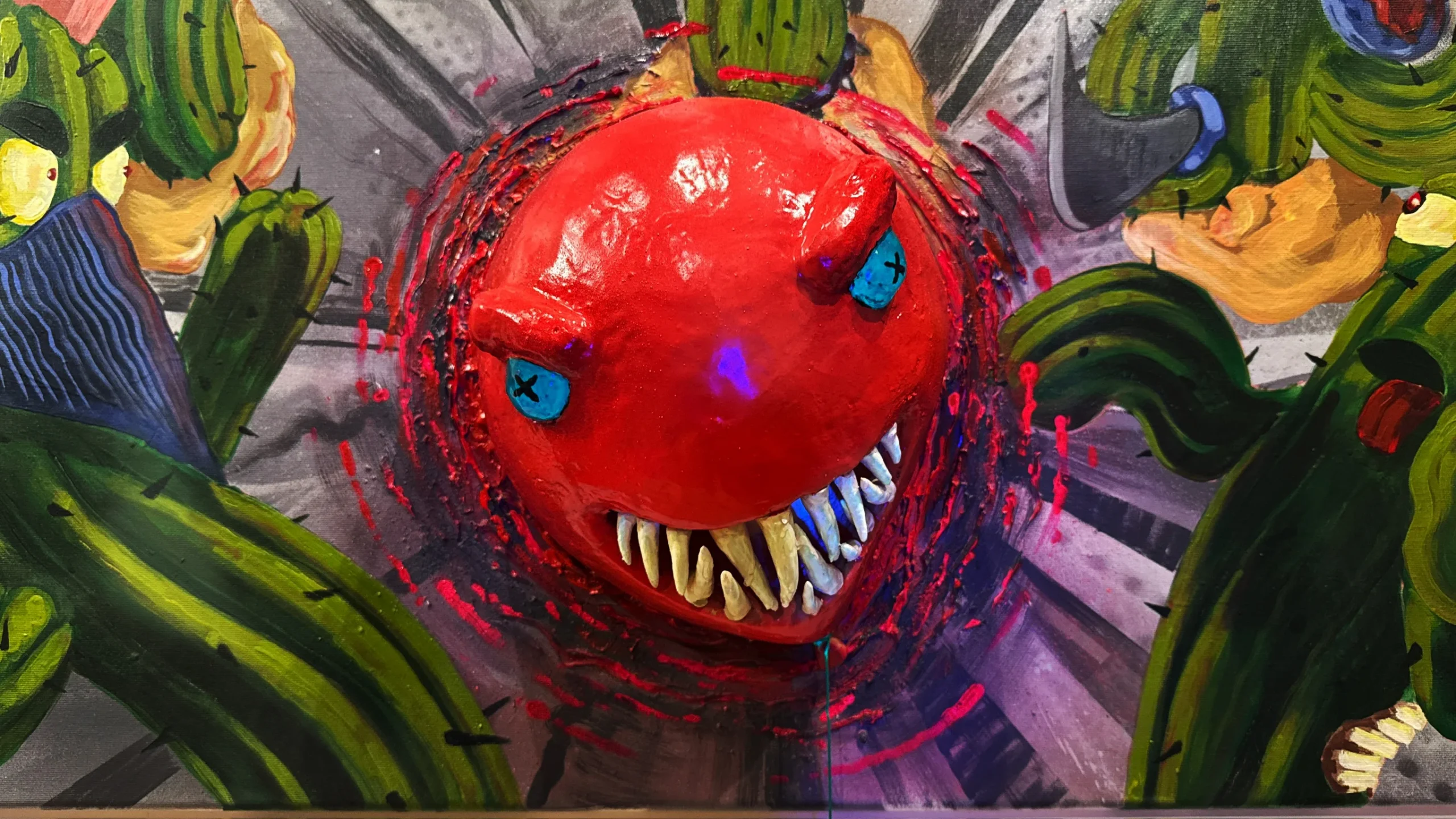The Clash is the centerpiece of the exhibition „Cactus in a world of delicate flower” and represents the „confrontation” between the cactus tribe and Popper. Somehow the latter manages to break the barrier between the worlds and enters our world…watch out!